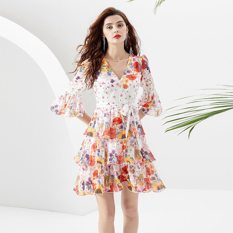 2025 White Chiffon Casual Beach Long Sundress Women Vintage Elegant Bodycon Party Midi Dress Short Sleeve Night Dress