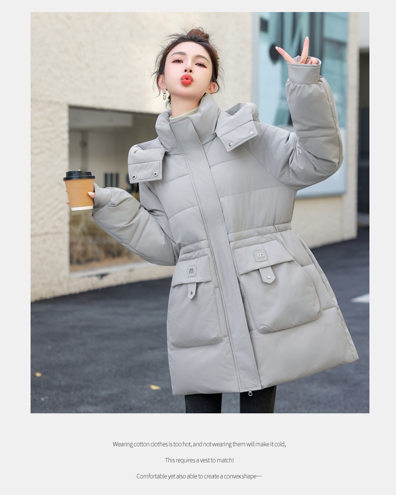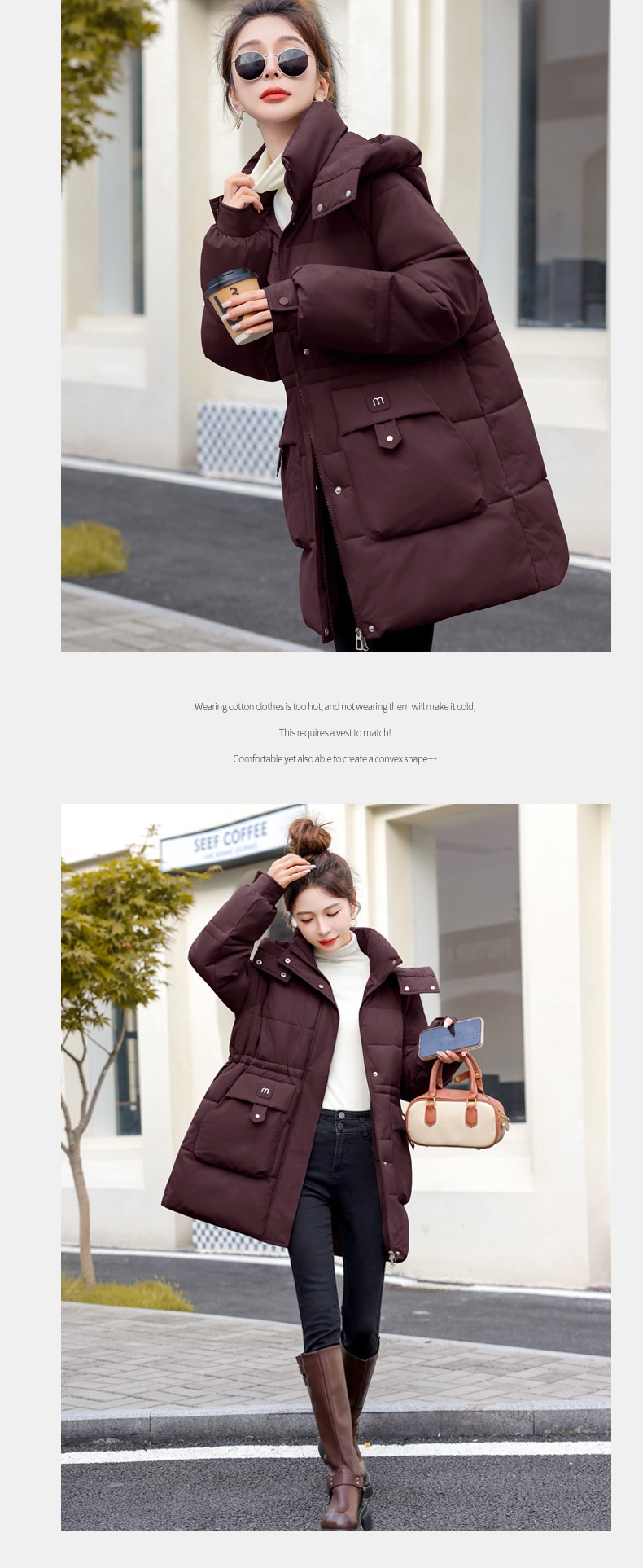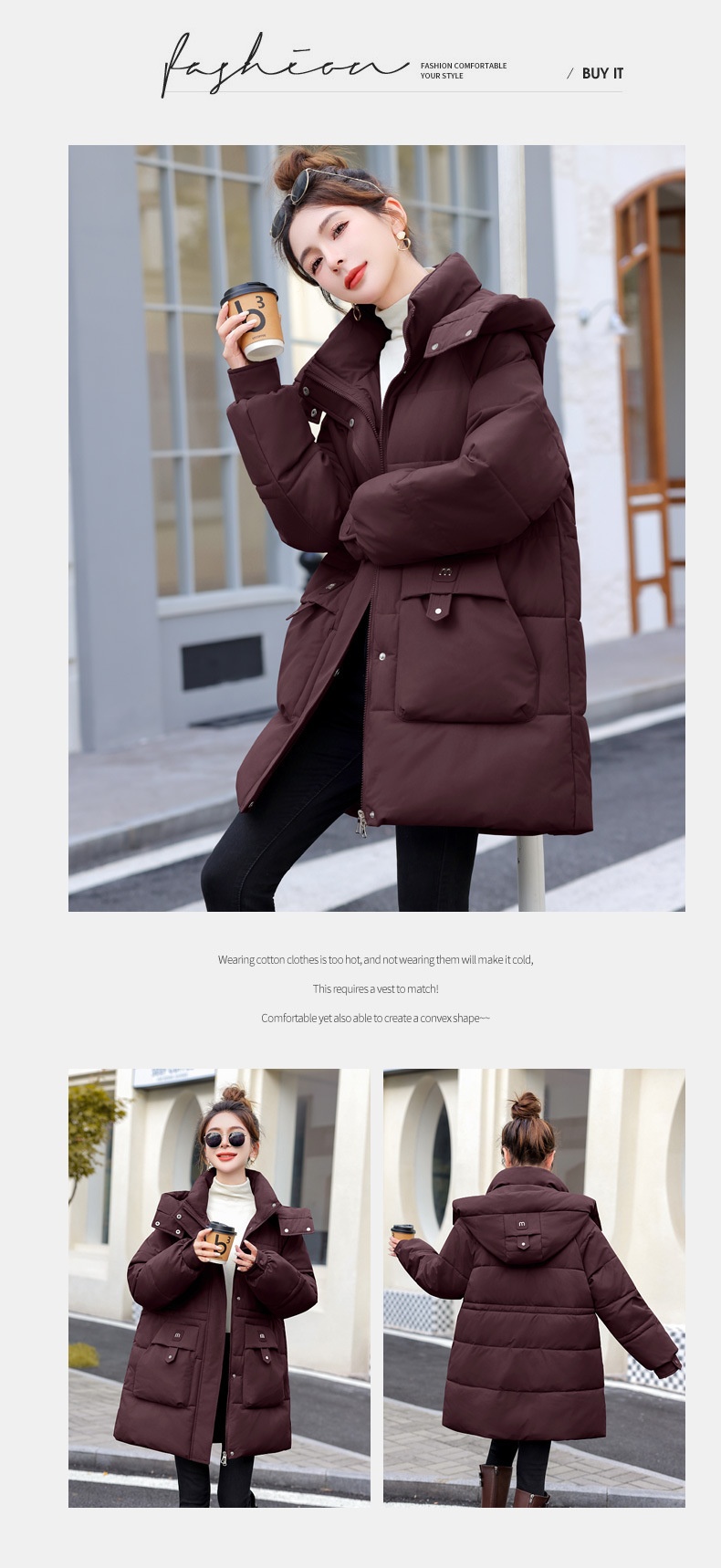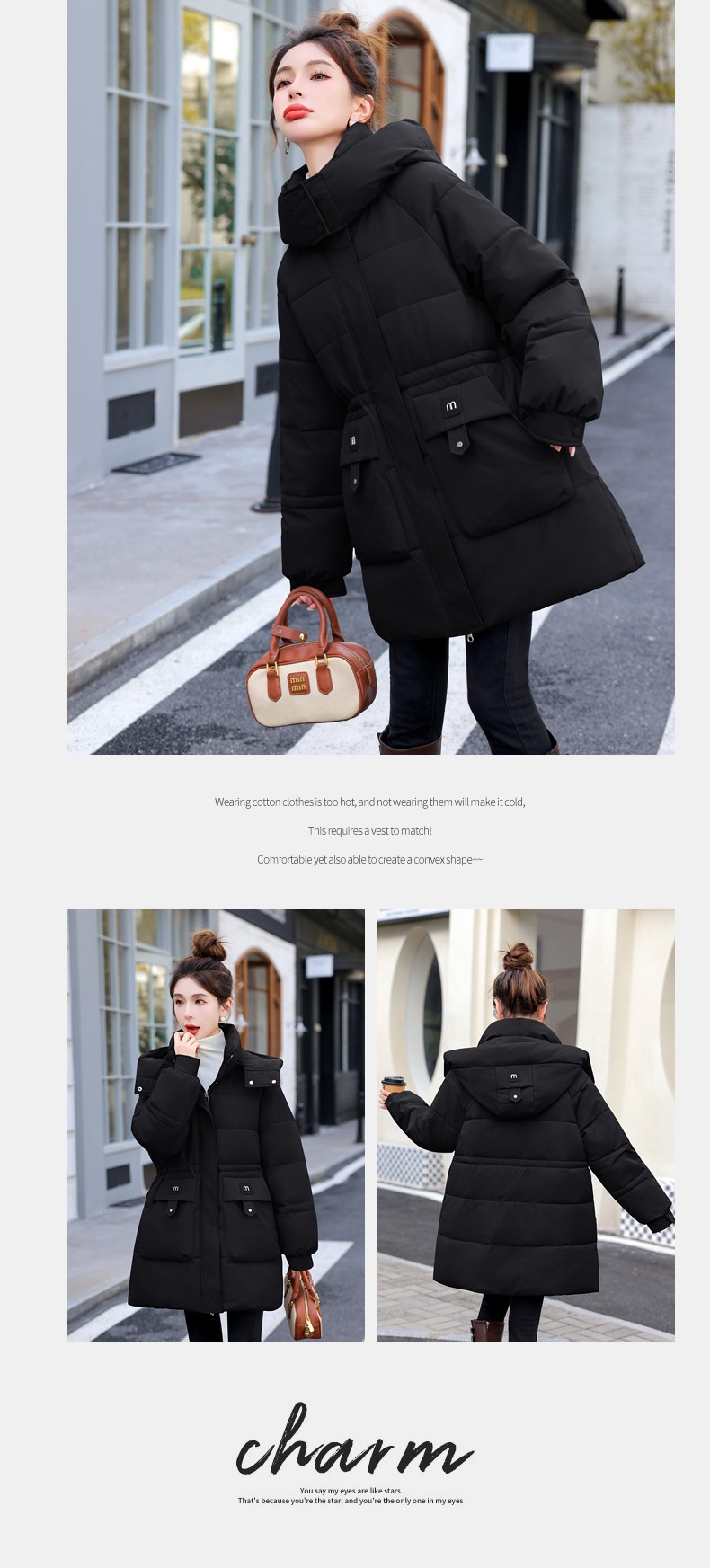 women's Cotton-padded Mid-length Thick Hooded Cotton-padded Jacket