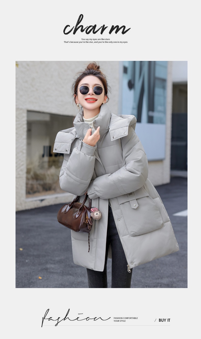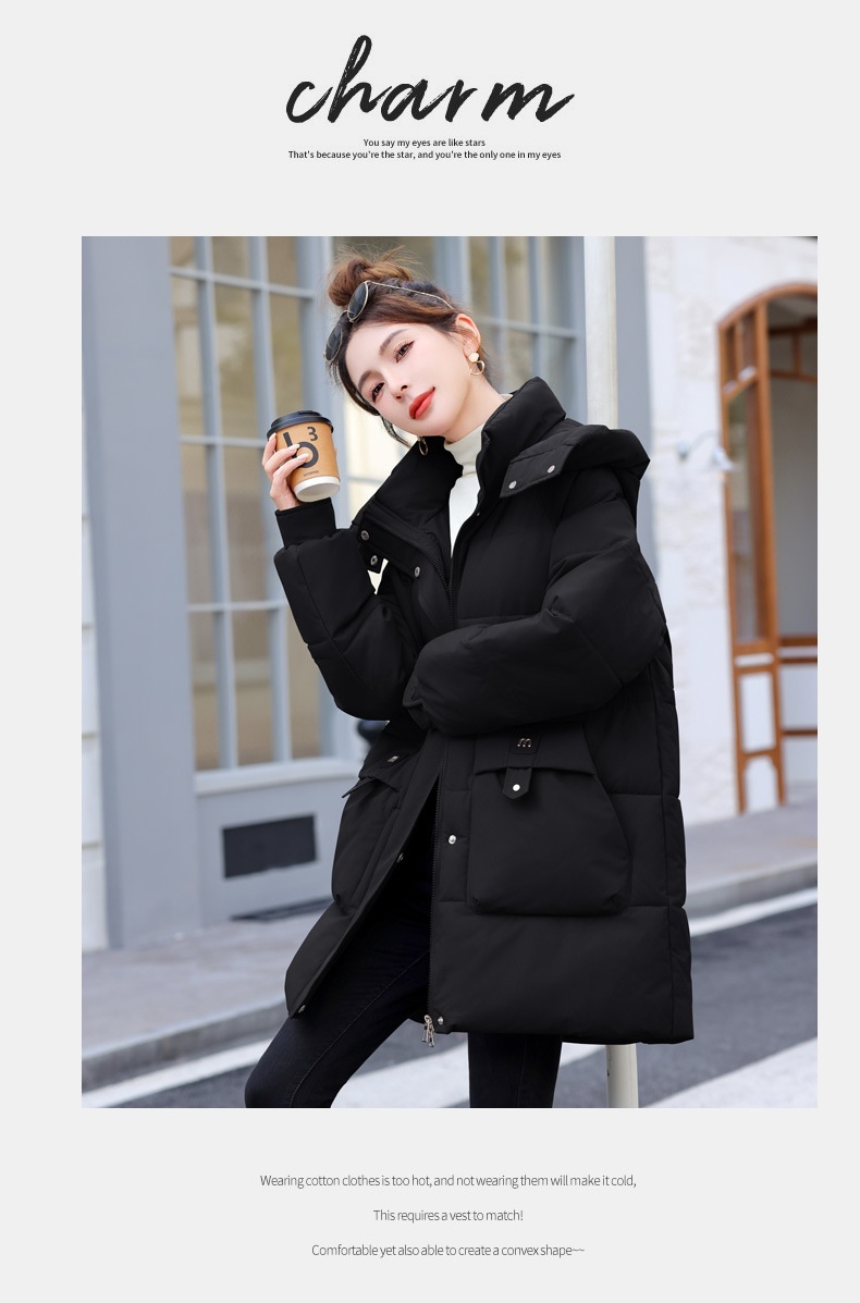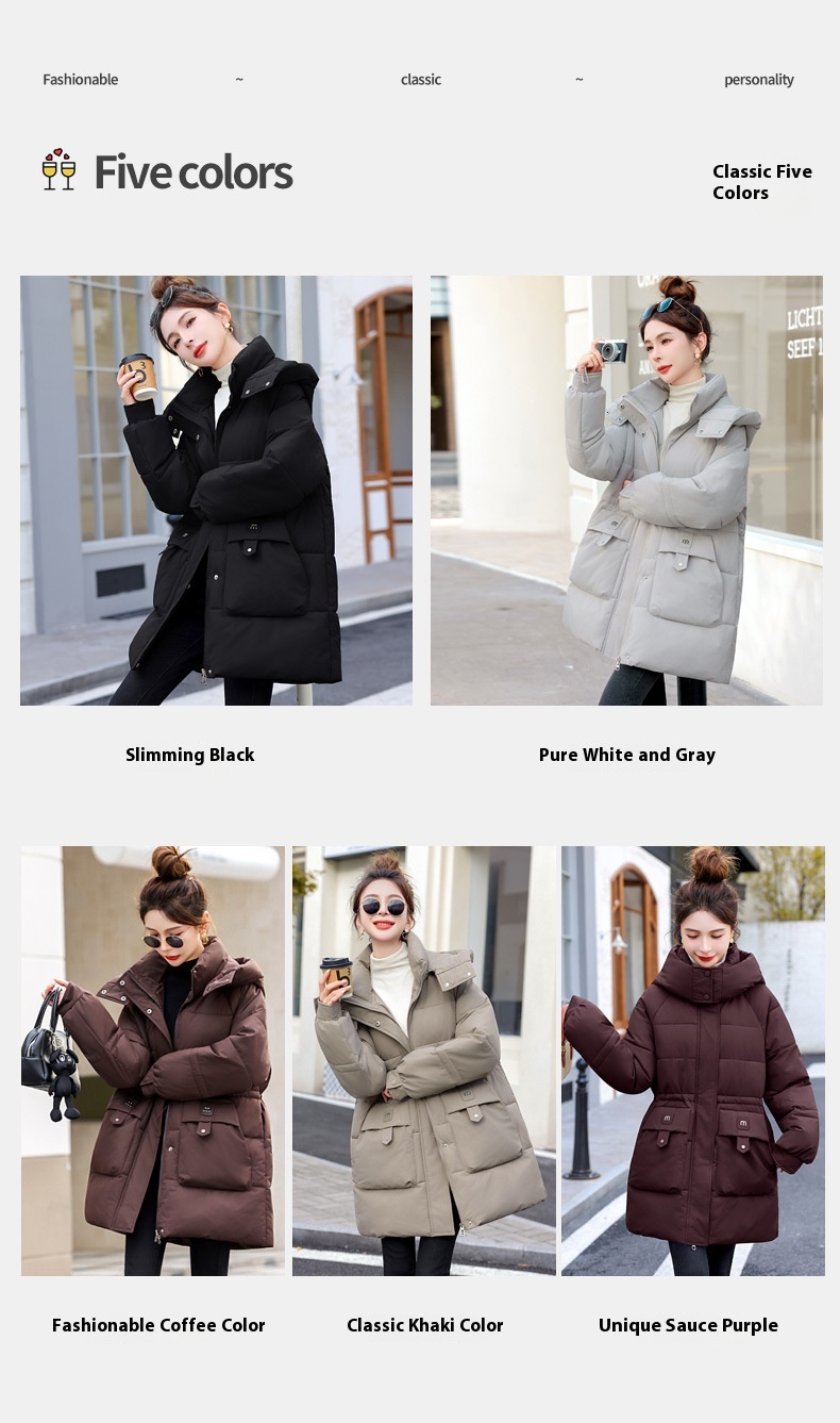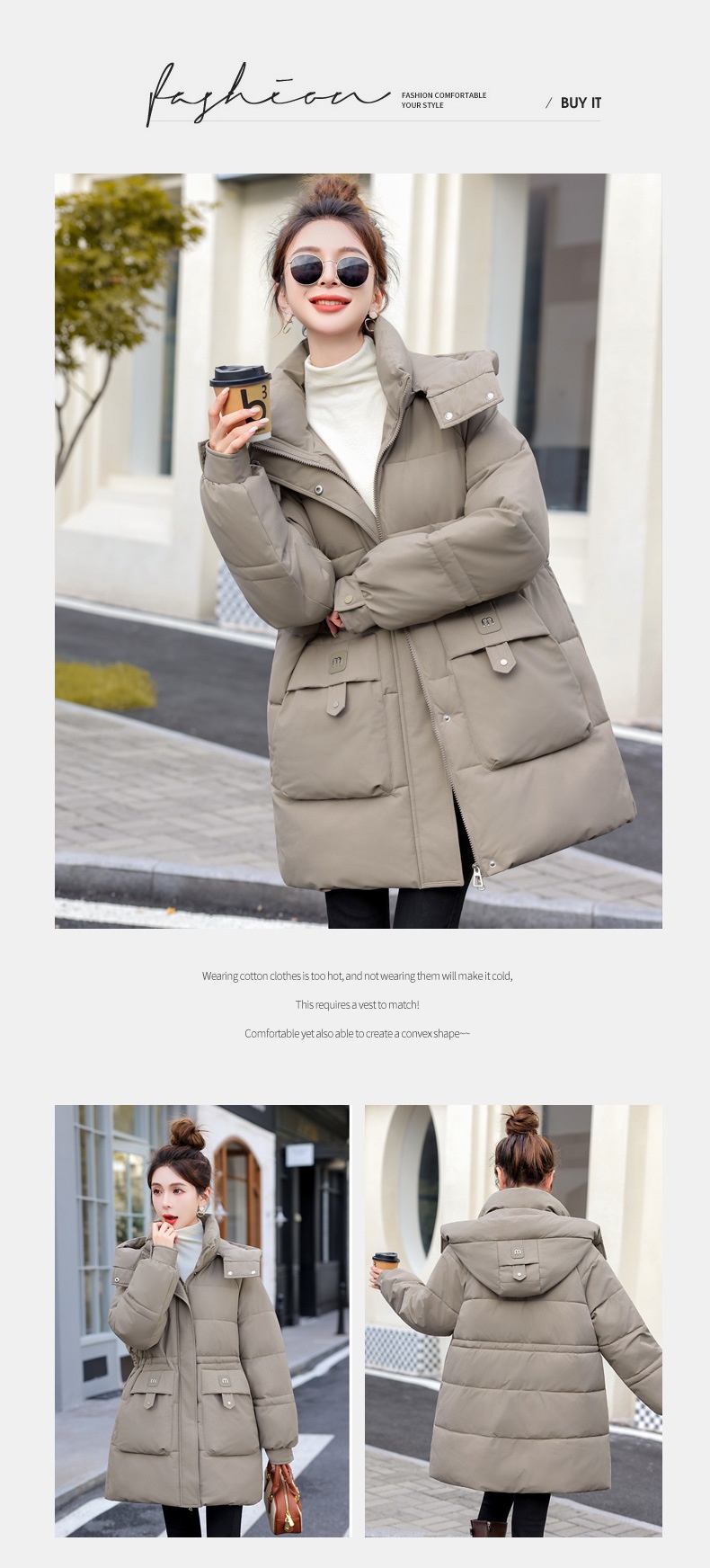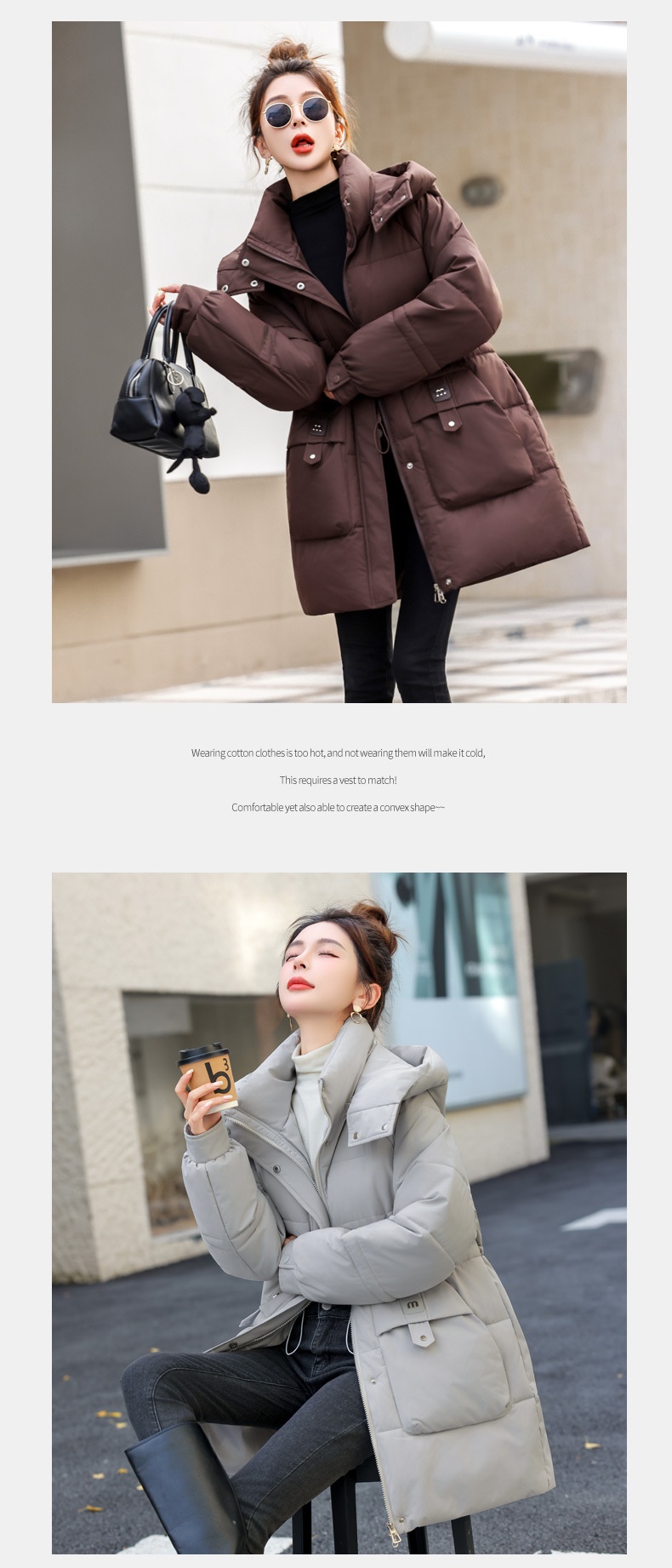 women's Cotton-padded Mid-length Thick Hooded Cotton-padded Jacket